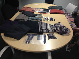 As the Research Fellow on the Emotional Fit project led by Dr Katherine Townsend (Associate Professor in Fashion & Textile Craft), I was responsible for managing the final stages of the research project, including the preparation and construction of the final collection of garment prototypes. The project has used geometric cutting to minimise the amount of wasted fabric in the production process and to produce versatile and adaptable silhouettes. Fabric selections (all natural fibre fabrics), textile prints and colour palette were developed in response to the groups' aesthetic preferences and desire to use sustainable materials. I experienced working within a team of fashion, textile and knitwear academics and lecturers to collaboratively finalise the collection. This included further textile print pattern development, selection of print, colour, fabric and design for the final garments, as well as managing their cutting out and construction. I worked with Fashion Design lecturer Karen Harrigan, to develop all aspects of production of the final pieces, including how to best use the co-developed printed fabric designs within the garment shapes and silhouettes.